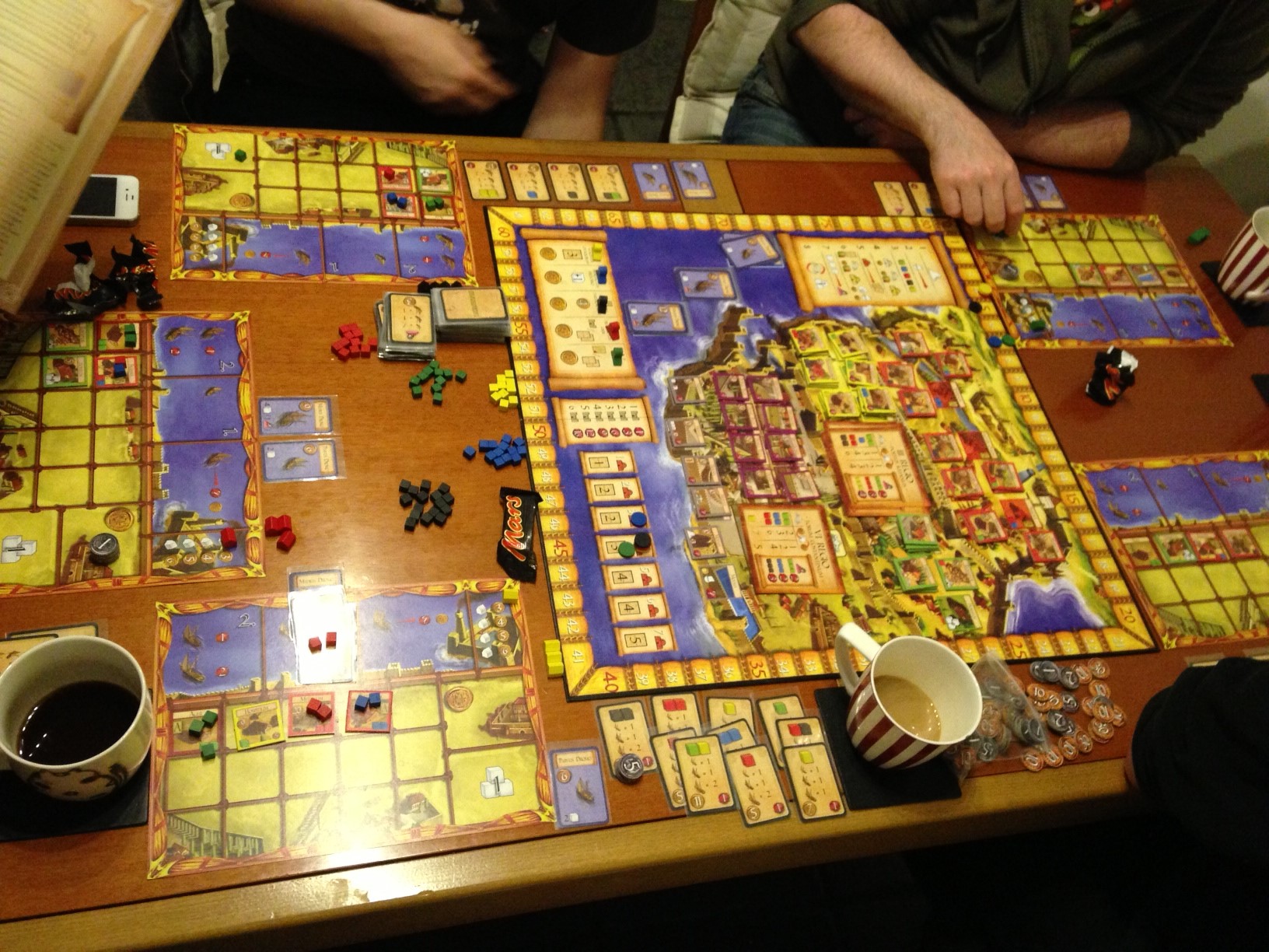 Constantinople (Not Istanbul) was the weapon of choice on Thur night thanks to one of the Tue night crew and a damn fine game it was too, but before that there had to be a warm-up, Incan Gold. Some gamers forget to mentally stretch beforehand and this can lead to confusion and general malaise in the game proper. Take my advice, always warm up with a simple game beforehand to get the ol’ brain spinning up to playing speed. Right Incan gold. Boy of Boy It really is a weak game. Even as a filler it just raises it’s head above Letter of Marque 🙂
