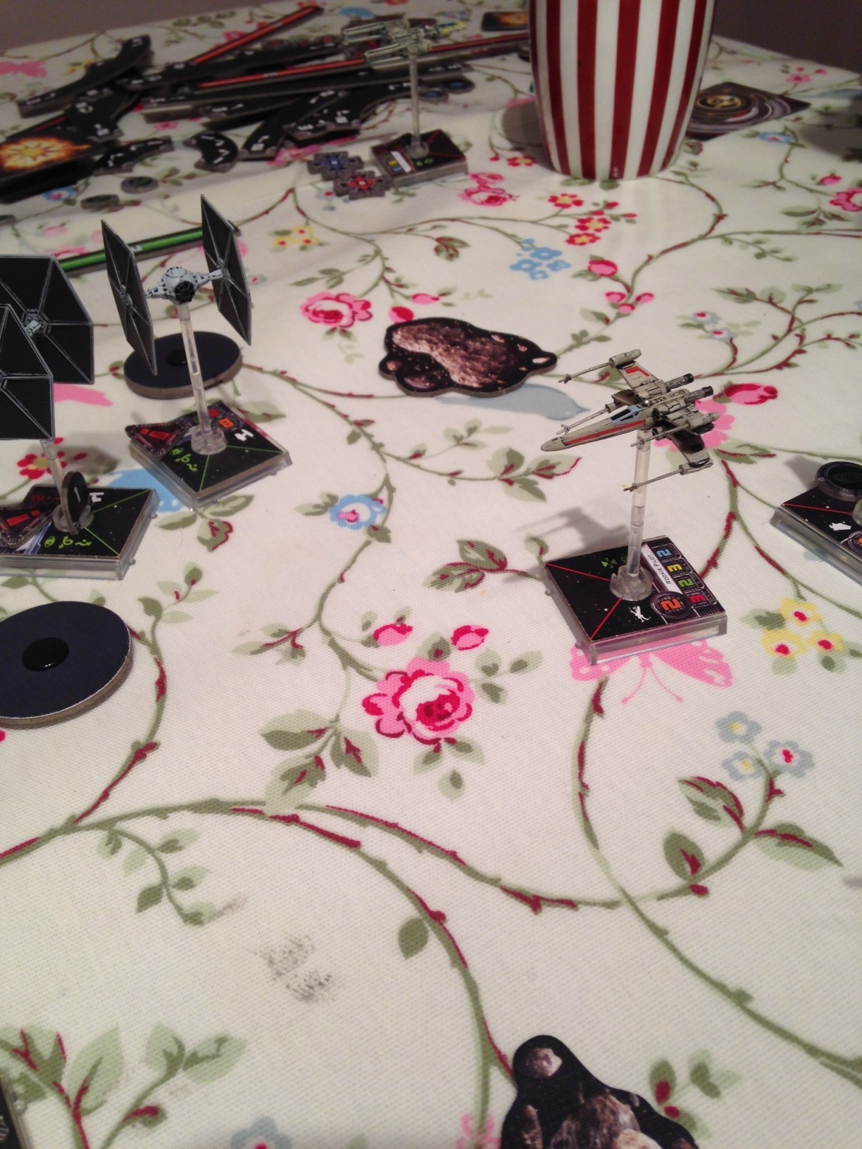 I’m pot committed with x-wing.  Myself and a gaming buddy (please note: buddy is a misnomer, there are no gaming Buddies as such, just opponents or people if you play it right, whom help you until it’s high time to stiletto them.  Just before they we’re planning on vaping you.  It’s the nature of things) but in the loosest sense of the word a gaming buddy (see earlier) and I have a fine collection of x-wing models which since it’s a mare to separate we’re married in a humanist ceremony some time back and are often seen out together having fun.  It was high time to crack open the boxes they reside in and breath some life into them with the appropriate rules and phew phews.