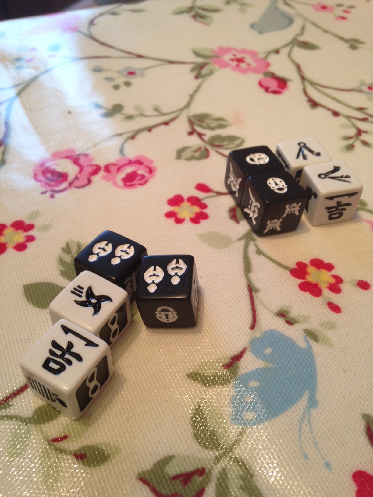 Ninjas get to hold and reroll whichever dice they like but there’s a time limit which I’ll explain badly later.