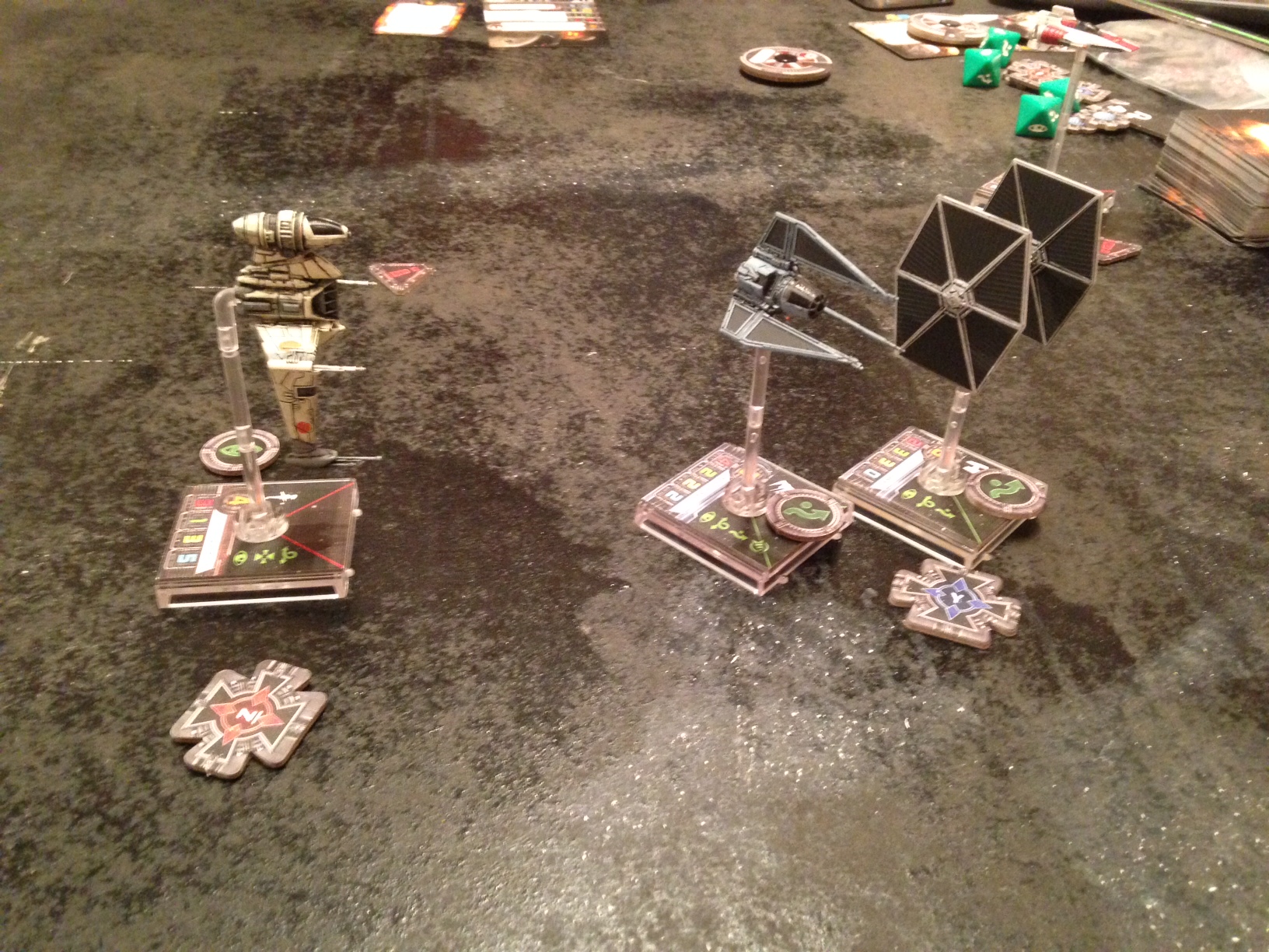 For the first few games I took a tie fighter (backstabber)(who’d have thought) and the phantom whilst my opponent took a B wing and an A wing