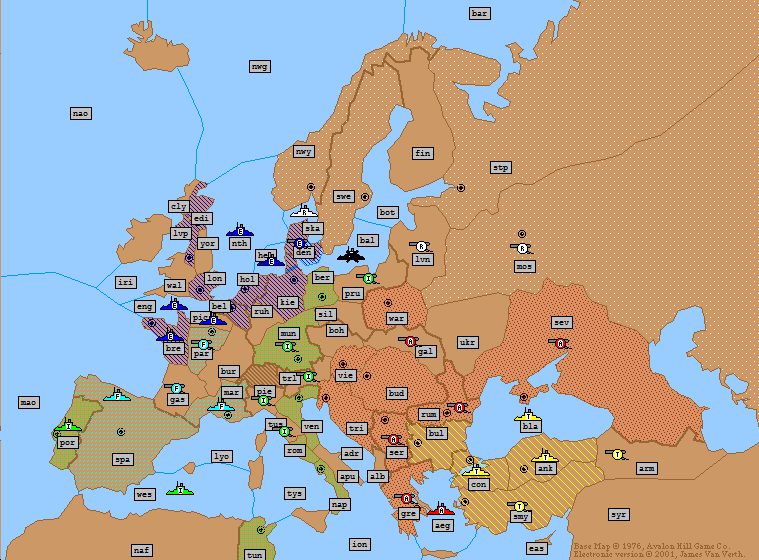 I did say this was not your average game of Diplomacy. Germany fell foul of well, pretty much everyone else early on and despite his best efforts never found enough (any) traction to get back into the game.