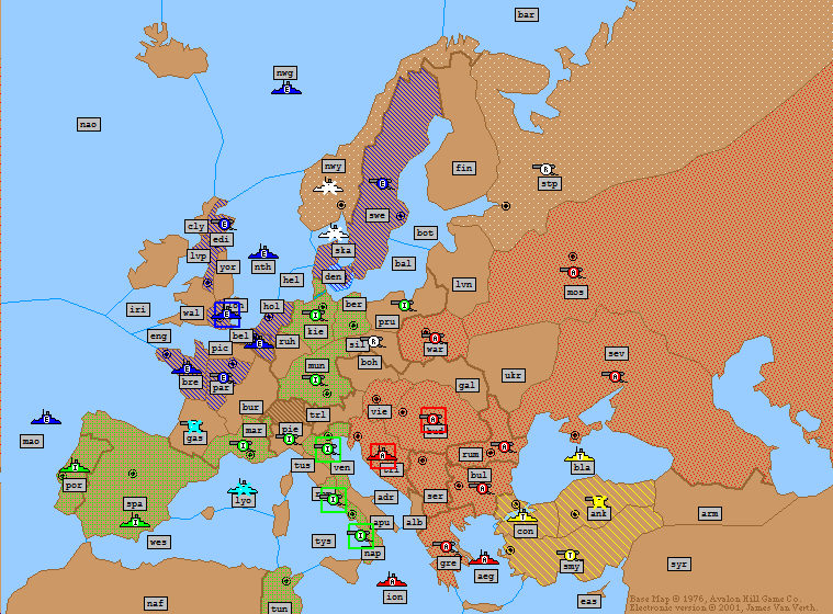 We bid a sad* farewell to France who was crushed mercilessly by the grand Italian army. I’ve said it before and I’ll say it now. This just doesn’t happen! France is the strongest army in the game, Italy the weakest. Italy is supposed to be the second quote, the also ran and what about Austria?! It’s not supposed to cause mayhem, it’s supposed to die just after Italy.