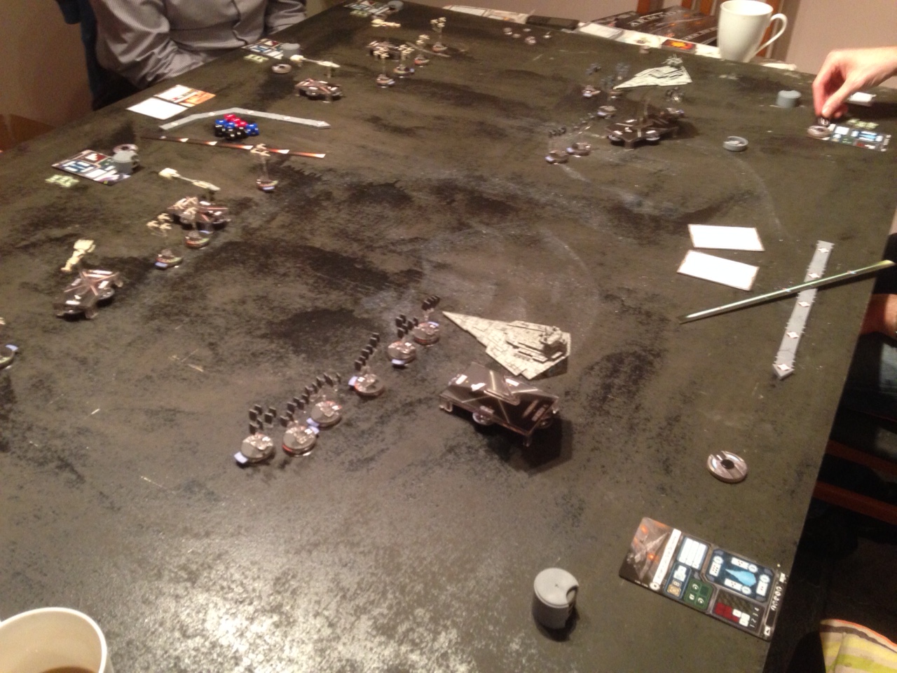 I got to play Star Wars Armada last night for the first time. Along with Imperial assault I seem to recall saying I had no interest in playing this game either this year…… I stand corrected. Not only have I played it I bought it.