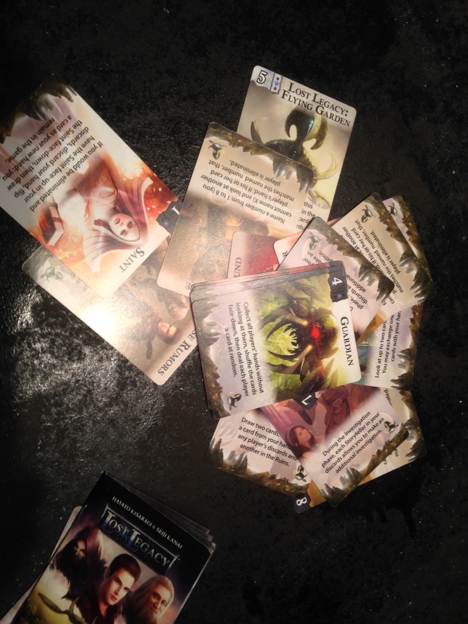 The game sees you trying to find the Lost legacy. Some sort of artifact of power (could be the toupee of inevitability for all I care) which will either be in someone’s hand or the discard pile. Whomever finds the card at the end or shows it in their hand or eliminates the other player during a round (a tall order) win. Rinse and repeat until someone scores 4.
