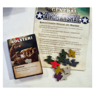 Quarter Master General is a great game. It’s a map conquest game. It’s fast. It’s easy to learn. It’s a barrel of monkeys fun. The expansion Air Marshall is good. It’s more of the same. It’s not essential but it does add something. To be exact planes.