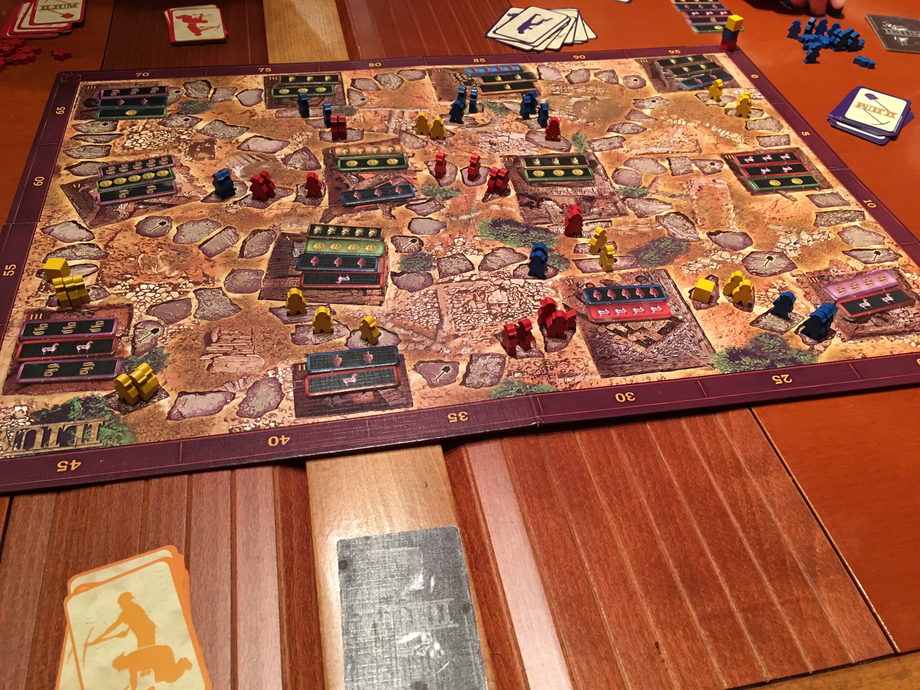 Ilium is a Reiner Knizia medium length worker placement game. It’s not bad. I picked it up cheap at the last Knavecon buy and sell. Well worth what I paid for it.