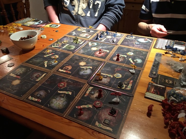 If you’ve not read my earlier gushing review of it. It’s set in the 40k universe and sees four players take on the roles of chaos (all out attack), orks (tough as old boots), eldar (weak but dodgy), space marines (balanced) and set out to recover a set number of relics belonging to you before the others get theirs. These relics are placed by your opponents usually as far away from your guys bases as possible. The map setup is slick with a number of strategic decisions required from the off. The game sees you constantly re evaluating your strategy. It’s an object lesson on how plans go out the window when faced by the enemy.