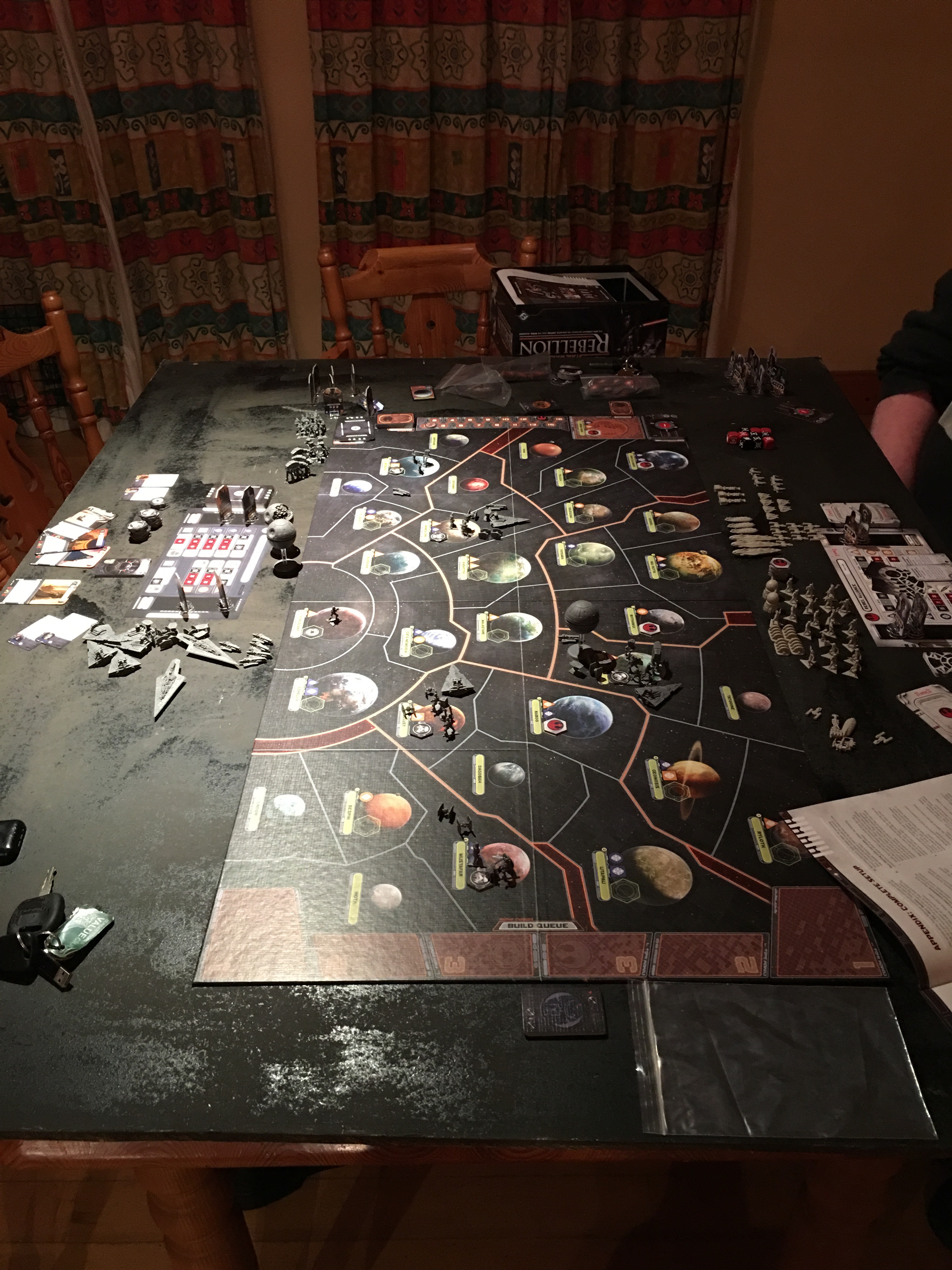 It’s truly a thing of beauty. Looking from the Imperial side out over the big map it’s hard not to cackle when you crush another rebel gathering. You’ll need space for this (pardon the pun). Your kitchen table might struggle. It’s not as big as say firefly but it is as big as forbidden stars. One quick note. It’s surprisingly fast to setup. You’ll be on the road in ten minutes max