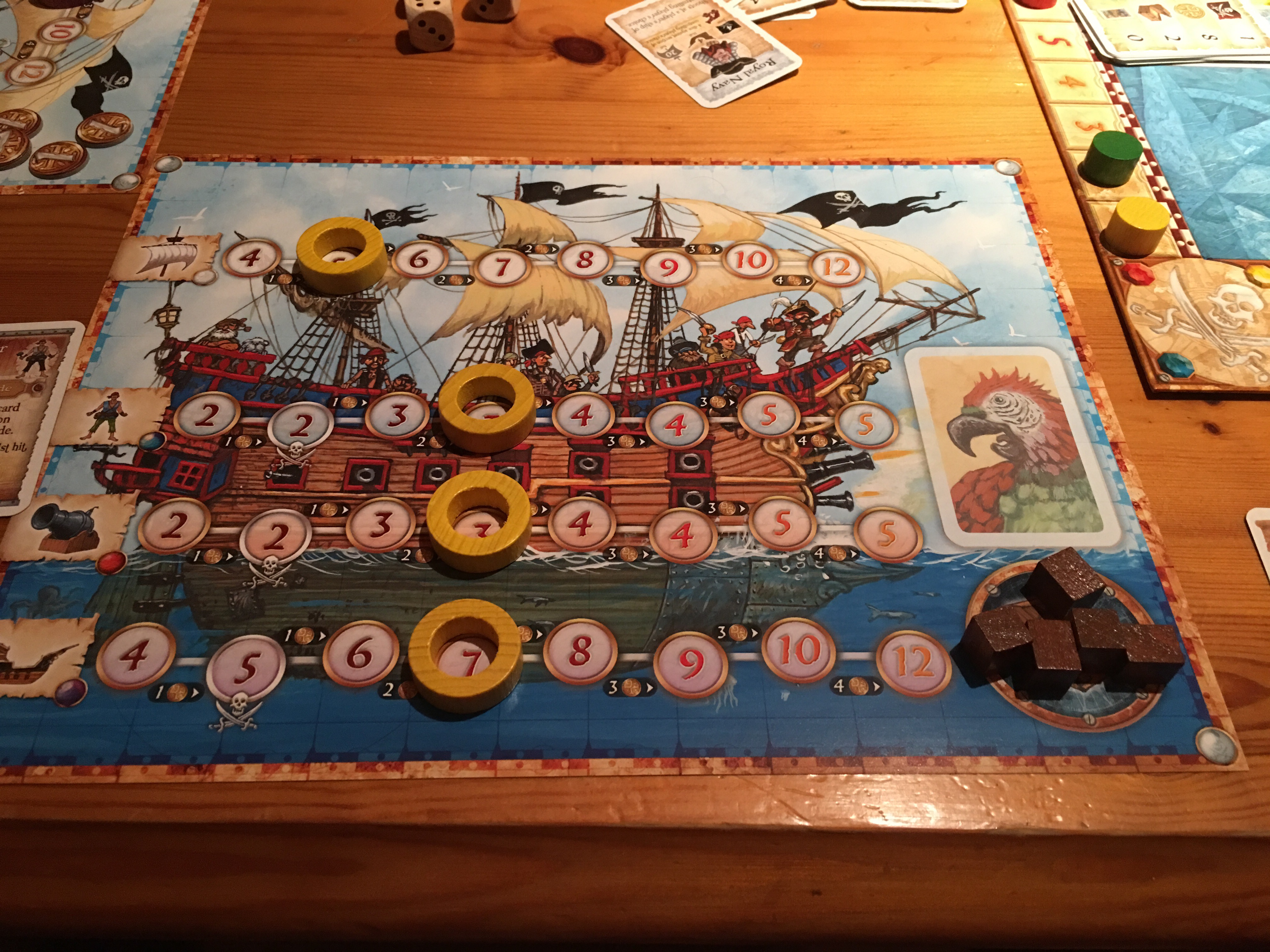 In addition to running into other players you can also bump into (if you’re stupid) the Legendary pirate who moves around from island to island one at a time and at the start of the game way outclasses you. Later in the game it’s possible to have a ship good enough to beat them but it’s a close run thing that’s sometimes worth the victory points. Kill that legendary pirate and another one appears (probably worse) at the start