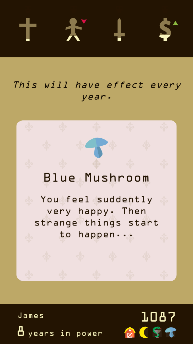 The meta game across all the reigns is clever too offering challenges of achieving certain things on each reign. Recruit the doctor. Fight the dragon and so on. Building certain things like barns and city walls carry on in the next reign and offer help in different situations