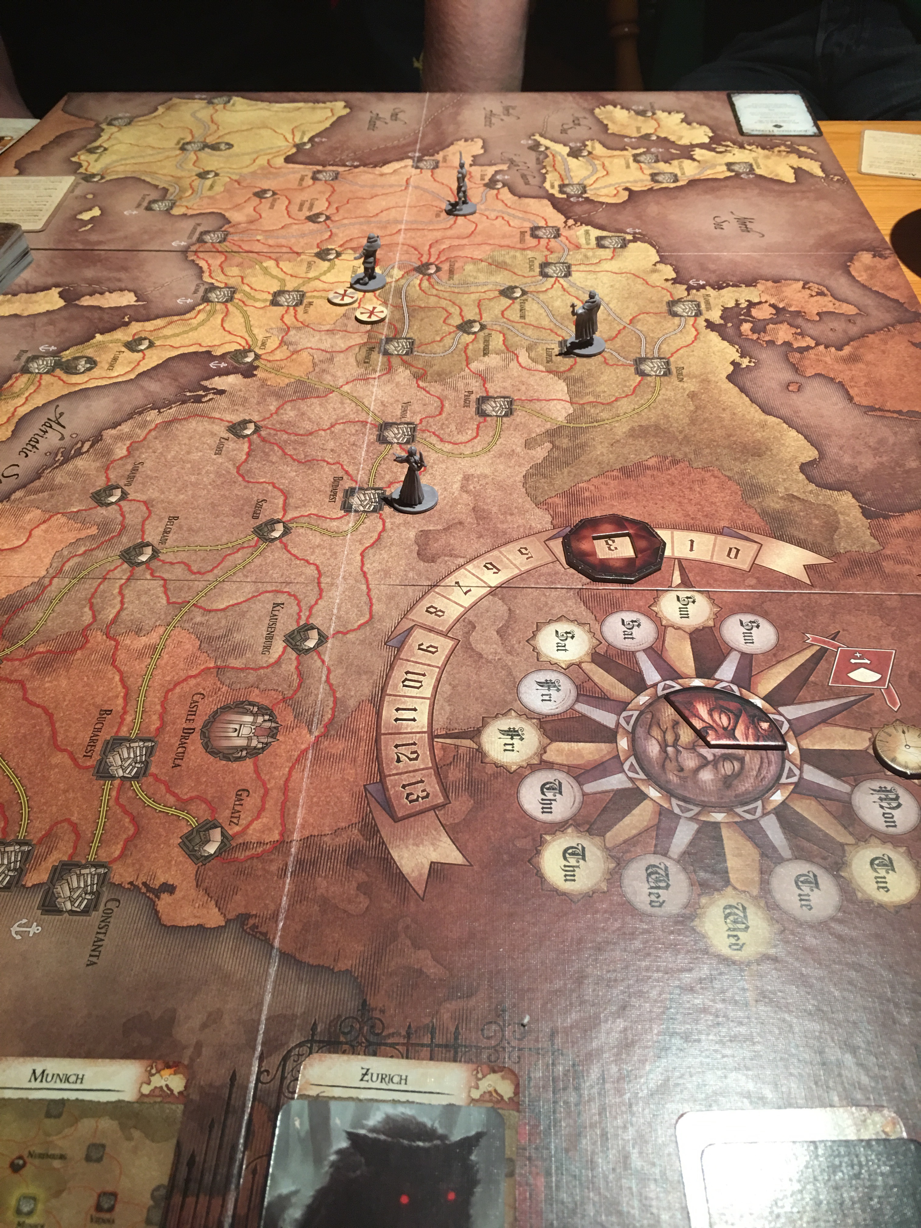 We returned to 3rd ed Fury of Dracula last week. It had been played a few times at the last Knavecon and I as Dracula had gotten hammered twice in a row having talked big beforehand. A almost sure fire way of guaranteeing a loss before you start
