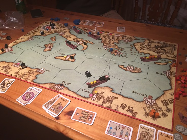 Mediterranean and through trading and *perhaps* piracy try to make as much gold as possible before the variable length end turn arrives.