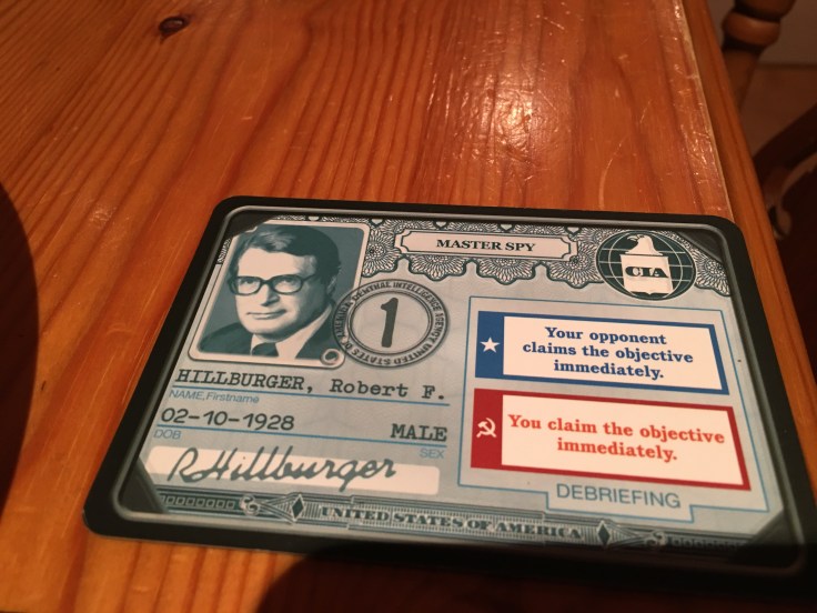 KGB v CIA is a super two player game. I played it with my wife recently and it’s still as good as ever. Now there is a Star Wars version of this out there “Star Wars. Empire v Rebellion”. It’s pretty much the same game, however having played both, this version is still my favorite.
