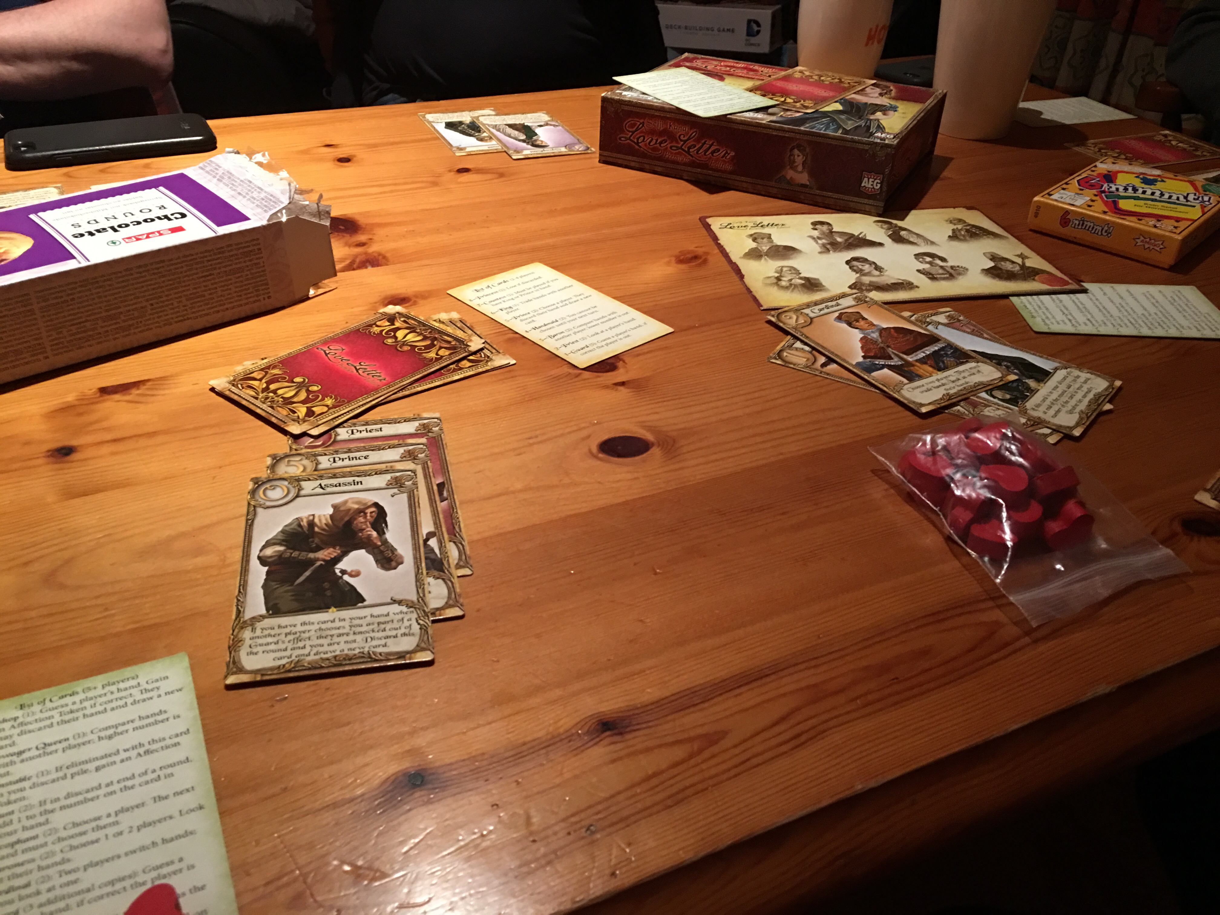 There have been a stack of themed versions of this game Batman, the Hobbit, Adventure Time, all of them basically the same game. Premium edition adds about the same amount of cards again this time with different roles. You now have the assassin which if someone uses a guard to guess your card kills them (nice) and the fool that bets on another player winning (nice again). All in all the new cards have been well thought out. They remind me of the dark city expansion for citadels. There’s been a good bit of thought in this expansion, I prefer the new cards to the old truth be told.