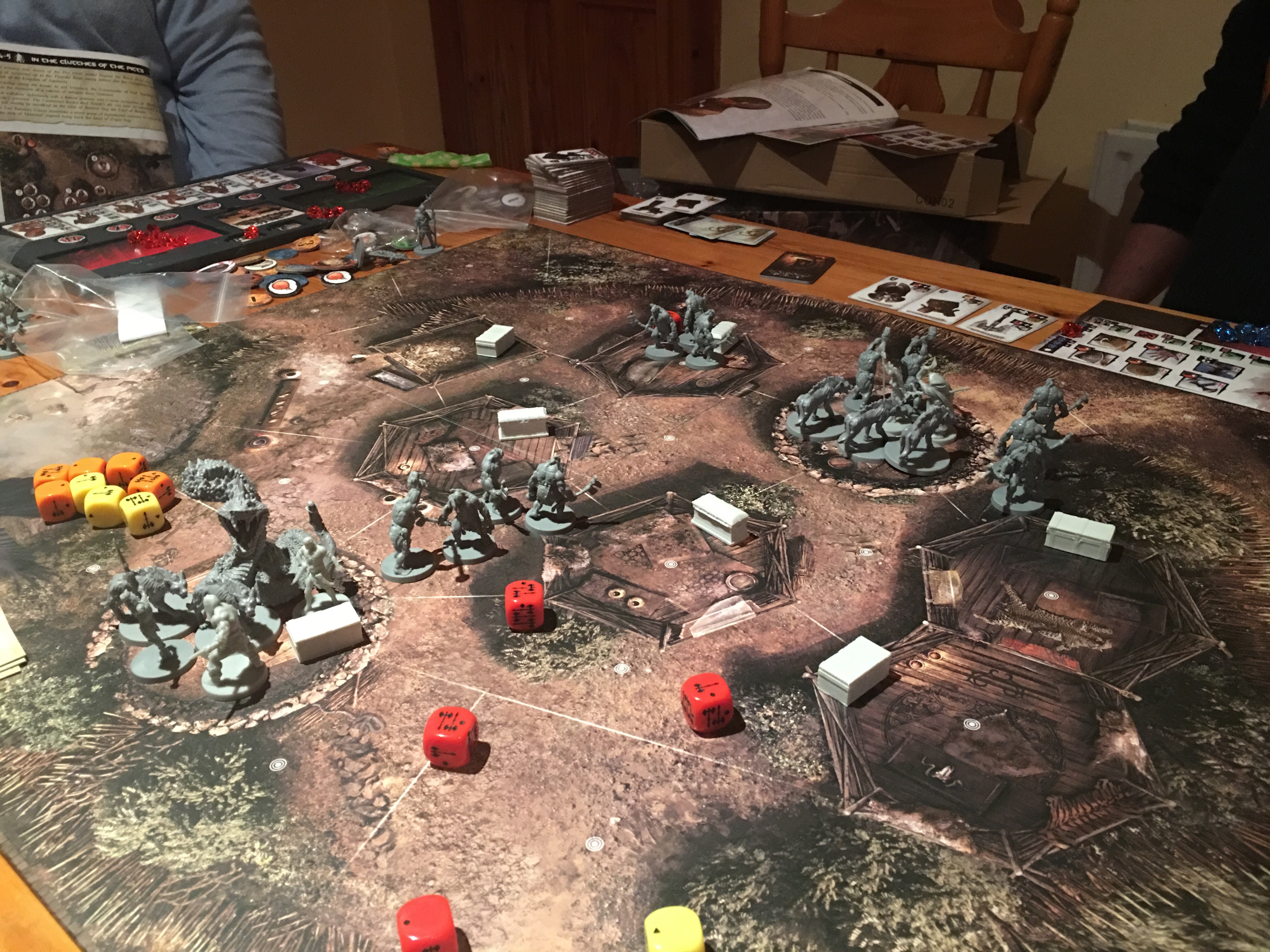 Conan is Heroquest ver 4 (or Descent v3). A group of 3-4 heroes embark on a quest each with it’s own map board and in a set amount of turns must complete it. The overlord who controls the monsters has to ruin their day. It’s a time honoured game model which is as old as Adam’s rib. Unlike the above games it’s not strictly an RPG. Your characters don’t level up (they’re pretty hardcore to start with). You pick a scenario and have at it. Each scenario takes places on a map board. The boards are set no modular adjustments. They’re a square 3×3 with everything on them. Three double sided boards come with the game along with a dozen or so scenarios. That’s it. Although more are coming and the internet is your friend.