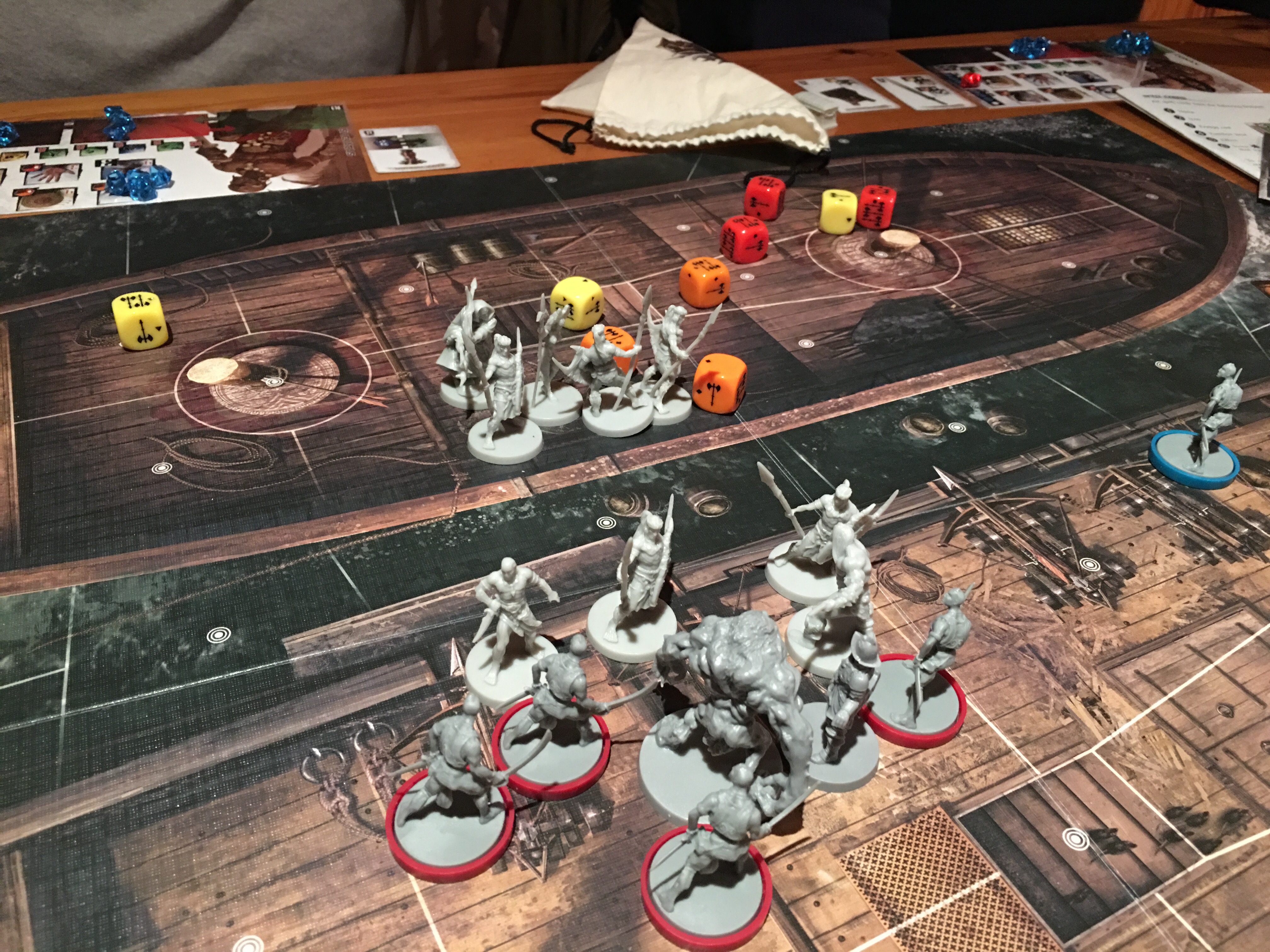 Did I mention the minis? One thing I’m impressed with mightily are the models. We were lucky enough to snag the full Kickstarter and it comes with nearly 200 very nicely sculpted models. Some of the monsters are incredible. The kracken and the giant snake are exceptional. Even without these minis the mechanics are so good in this game it could be played with just cardboard and it would still be amazing. With the models in place it goes from exceptional to legendary.
