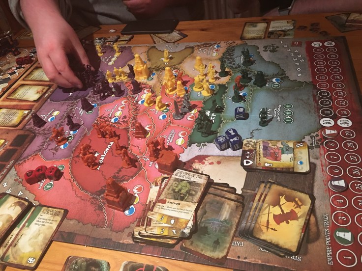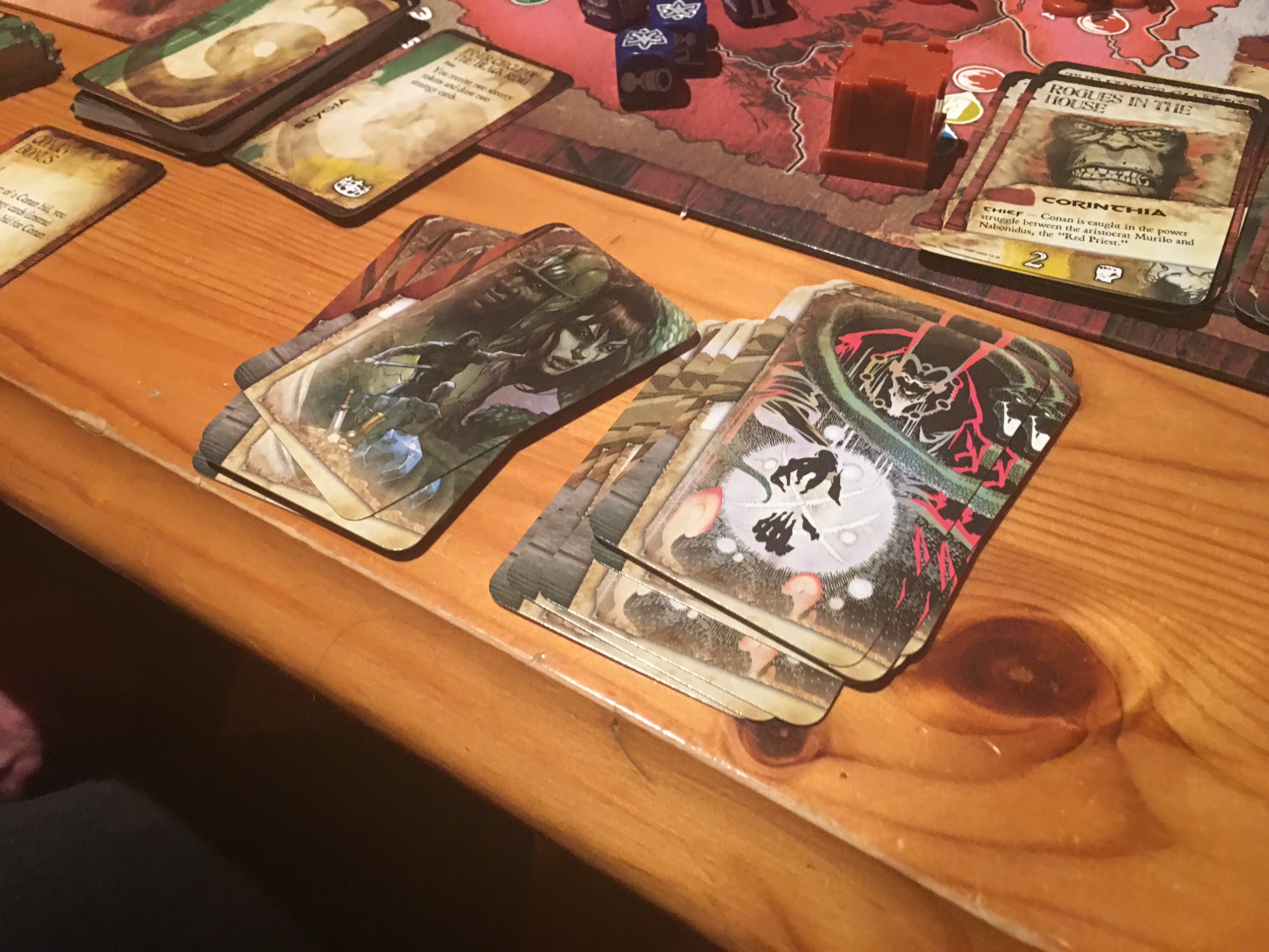 Conan is not a bad game it’s just not a great game. It’s over engineered and the hard slog against the game itself makes it quite a solitaire affair. This is quite the sin for a conquest game. During a game you rarely feel threatened by other players. You know they’re so invested with their own treacle swims they don’t have the resources or inclination to attack you. Truth be told there’s no real advantage to attacking other players really. When a player has armies on your border you should be afraid it’s a convention universally accepted. Not so here.