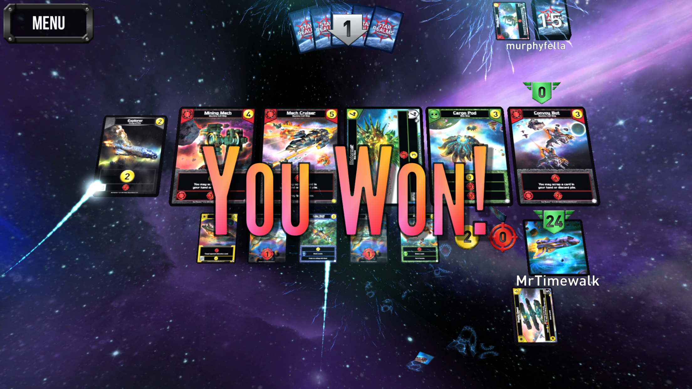 Star Realms is a lovely little two player card game. I’ve spoken a few time before about it. It’s a non collectable dueling game set in an epic conflict between four space faring factions. The bio hive Blobs, the robotic Machine Cult, Empirical Federation and Royalist Star Empire or green, red, blue and yellow for short. The electronic version of this game is magnificent.