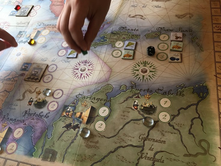 You do this by sailing over and knocking the shite out of the locals and half inching all their gear. Bonus points for conquering cities and fortresses. Each player gets a number of action disks numbered one to four and has to place them face down on various objectives. Once all are revealed it kicks off and first in line at the trough (if they overwhelm the locals) gets the best pickings. There are limited spots at each of the dozen or so objectives so carful use of your action cards and careful bluffing is key. In the event of two captains attacking the same location with the same initiative on their action disk it’s decided by the captain that left port and set sail earliest.