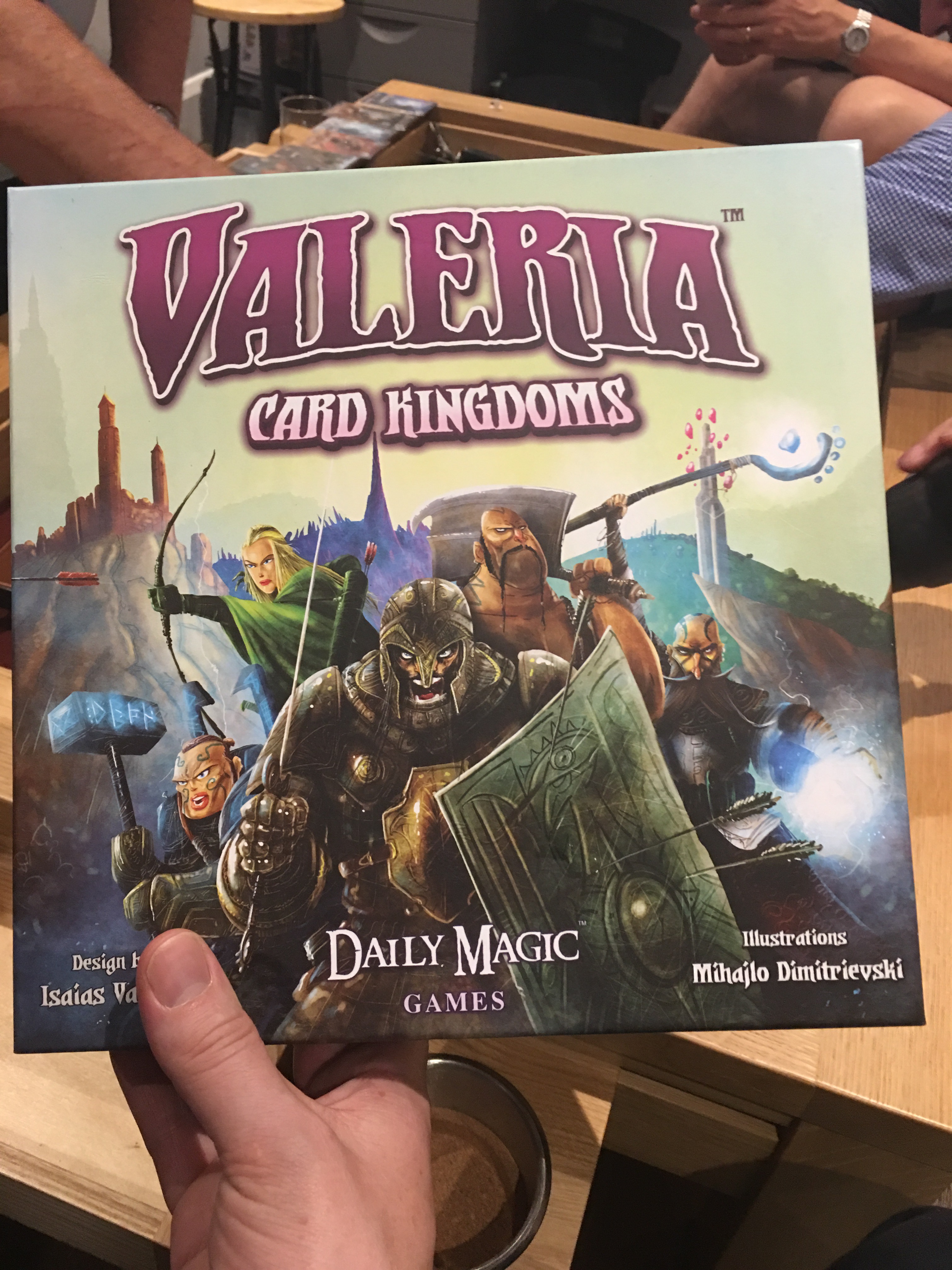 Valeria Card Kingdoms is similar to Thunderstone. Each player is a hero wrangler recruiting warriors, mages and various brawlers, killing big scary monsters, taking over lands and castles and generally having a good old fantasy time but more accurately accumulating score.