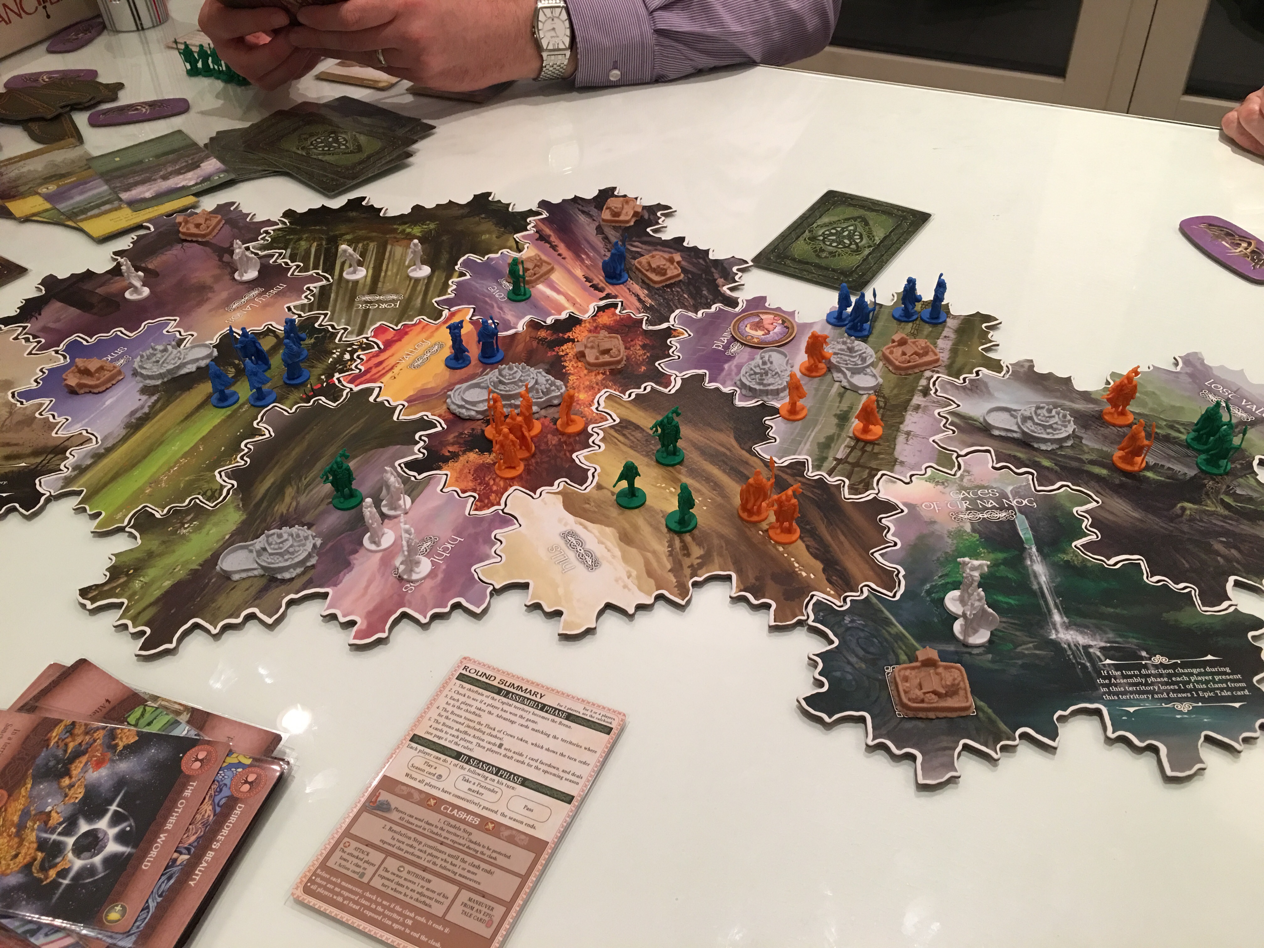 Like a lot of games you play for the first time you can’t see the shape of things or how close people are to winning. You get it quick though with Inis. More so as others are misdirecting you with shouts of “he’s about to win!”. The game is close and tense. It’s forgiving. You often feel like you screwed up but not that it will cost you the game. You can get back on the track pretty quickly or at the very least have a damn good go at it.