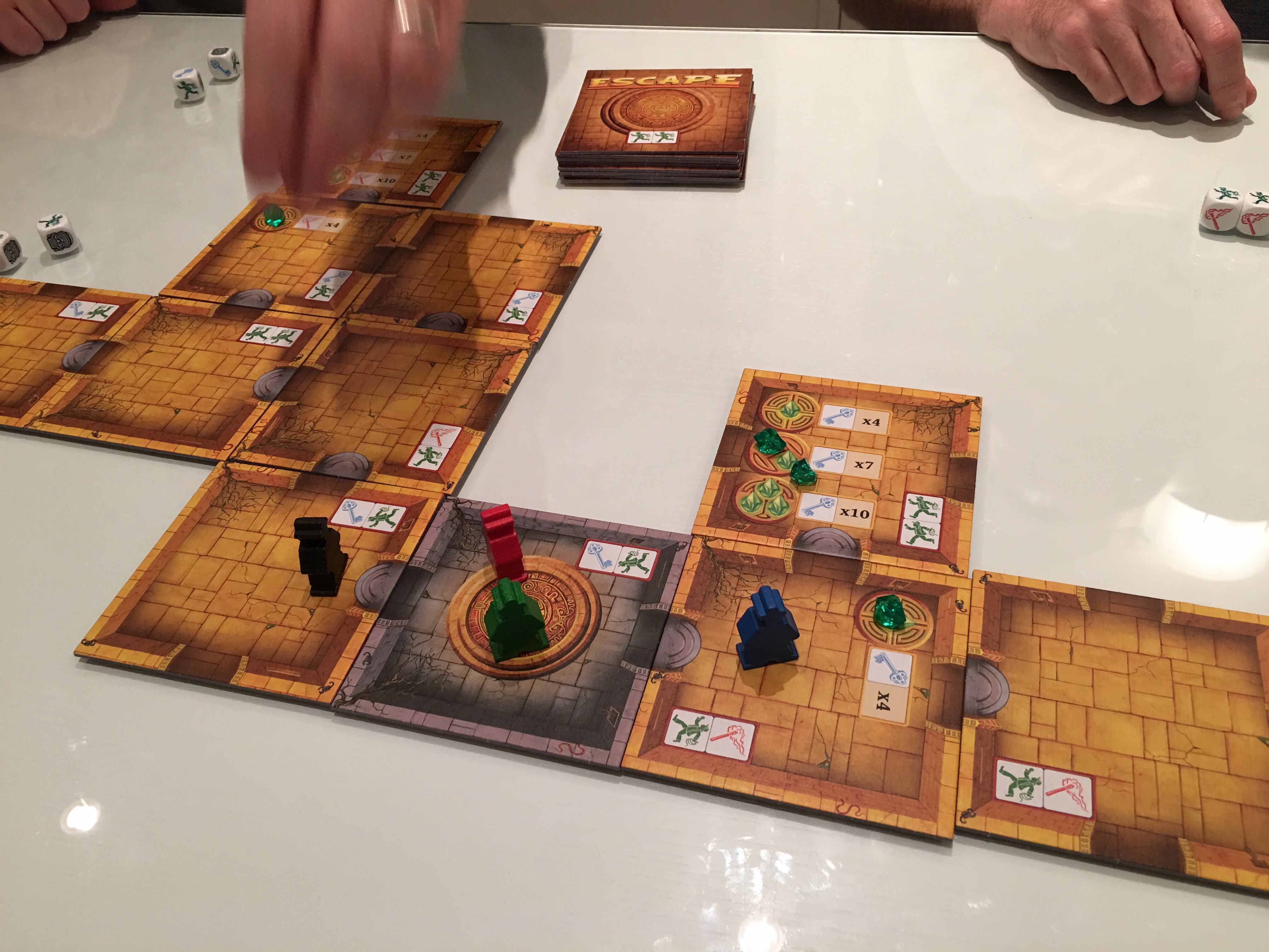 Eventually the exit tile appears and you need to make it there and pass a final very difficult dice challenge to escape. Everyone has to escape or it’s not a win (boo!) and that’s it.