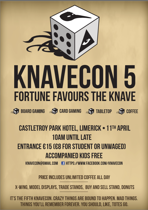 I’m looking forward to gaming with all of you in 2015, drinking coffee and above all talking shite with conviction. Knavecon V is on the 11th April. Make sure you’re green lit for it. It’s going to be good. Actually it’s going to be REALLY good. Until then, keep gaming, keep talking and keep the faith,